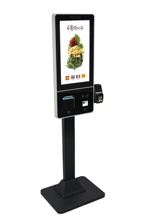 Quiosco con dos pantallas táctiles de 32” para aumentar por dos las ventas en tu negocio.