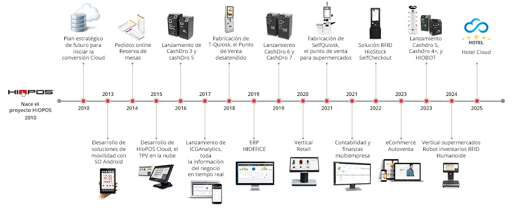 En 2010 crea HIOPOS SOLUTIONS e inicia un plan estratégico para hacer frente al futuro. Así, la organización realiza una importante aportación de recursos, tanto en capital humano como en inversión económica, en I+D+I para diseñar una plataforma cloud propia con tecnología de última generación y construir desde cero, pero con el conocimiento adquirido durante 40 años de experiencia, todas las herramientas necesarias para tener soluciones globales que dieran respuesta a las necesidades actuales y futuras de los clientes más exigentes.