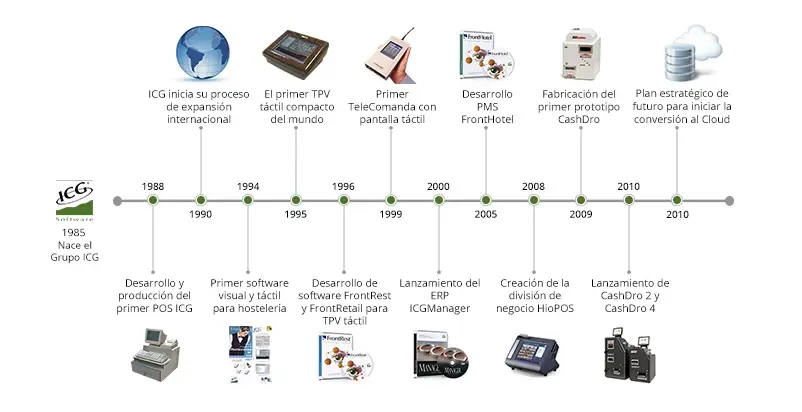 Con la aparición del primer Windows, en 1994, ICG desarrolló el primer software visual y táctil para la hostelería y en 1995, diseñó el primer terminal punto de venta táctil del mundo, lo que revolucionó tanto el sector tecnológico como la forma de trabajar de la hostelería y el turismo. Este nuevo modelo tecnológico de gestión traspasó fronteras y contribuyó a la expansión internacional de la marca ICG y de sus productos.
